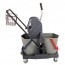 Professioneller Doppelfahrwagen Reinigungswagen in Kunststoff mit zwei 17l Kunststoffeimern und einer Profipresse.